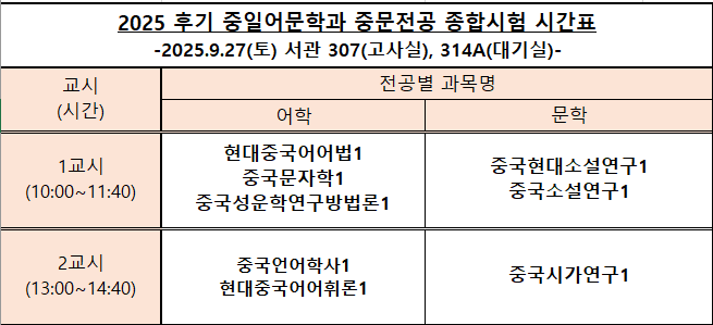 신청과목이 누락되었거나 동시간대 응시과목이 있는 경우 반드시 세미나실로 연락바랍니다.